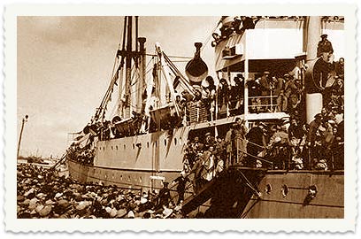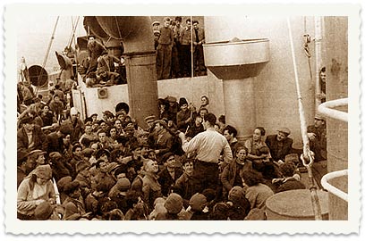 המעפילים מטפסים בהמוניהם על ה"עצמאות" בדרך לארץ ישראל