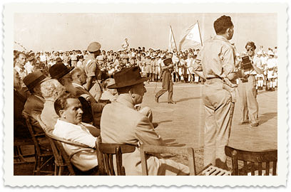בטקס מסירת הנמל (בלבן אבא חושי, לימים ראש העיר חיפה)