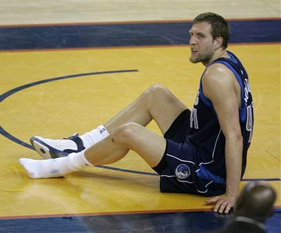 דירק נוביצקי על הפארקט והקרשים, הבוקר באוקלנד (צילום: איי פי)