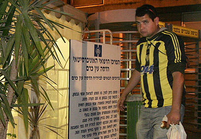 אוהד בית"ר מגיע לבית החולים הדסה עין-כרם (צילום: דודי ועקנין)