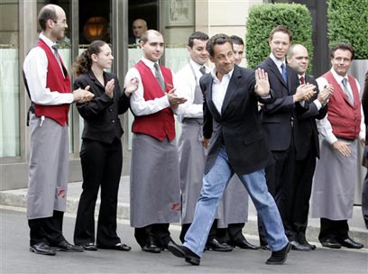 סרקוזי הבוקר בפריז. לא הסתיר את חיבתו כלפי ארה"ב (צילום: איי.פי)