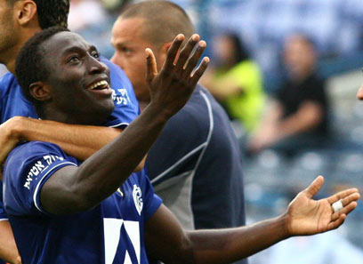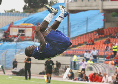 אמנגואה חוגג את השער עם סלטה בלי בורג (צילום: אלי אלגרט)