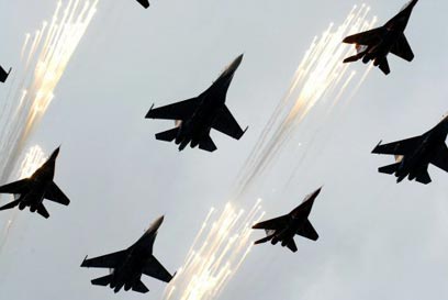 מטוסי חיל האוויר הרוסי במפגן אווירי בשמי הכיכר האדומה (צילום: רויטרס)