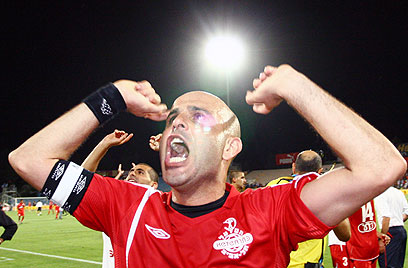 אבוקסיס באקסטזה. הנהיג את החגיגות עם האוהדים (צילום: אלי אלגרט)