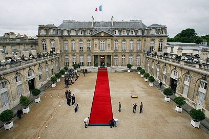 מכינים את השטיח האדום בחצר ארמון האליזה (צילום: AFP)