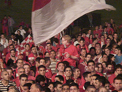 האוהדים האדומים והחולצות המקוריות (צילום: יועד כהן)