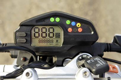 יחסית לסינגלים, המנוע הזה מאד חלק, חזק למדי ובעל יכולת נשימה מעולה. הכוח זמין בכל טווח סל"ד, והדיאטה שעבר הופכת את תגובת המצערת למהירה מבעבר. לא אהבנו לעומת זאת את העצלות המאפיינת טיפוס מסל"ד סרק. אבל המנוע הזה חזק, וזה מאד מרשים. על הכביש, שיוט נינוח באזור המהירות המרבית המותרת אינו בעייתי כלל, למעט מיגון רוח חסר וכידון רחב.
