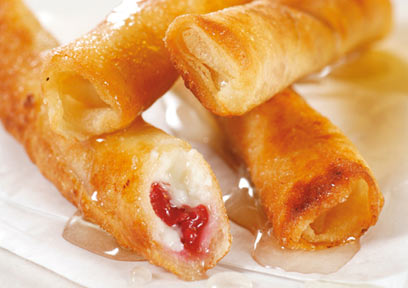 - מטגנים ומגישים: מחממים שמן לטיגון עמוק ומטגנים את הסיגרים 2 דקות להשחמה. מסדרים על צלחת, מזלפים סירופ דובדבנים ומגישים.