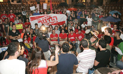 מפגינים נגד ההסכם, מול כינוס נציגי הסטודנטים (צילום: עידו ארז)