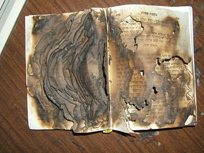 ספר תנ"ך שרוף בבית-רוטנברג בחיפה (צילום: באדיבות משטרת ישראל)