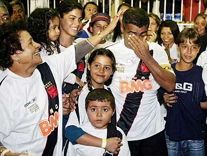 רומאריו עם בני משפחתו על הדשא. 16 דקות של חגיגות (צילום: איי אף פי)