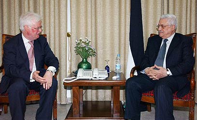 אבו מאזן (משמאל) בפגישתו עם שליח האו"ם, מייקל וויליאמס (צילום: AFP)