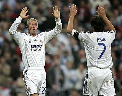 ראול ובקהאם חוגגים ניצחון גדול (צילום: איי פי)