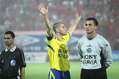 אבוקסיס חוגג את השער הראשון בדרבי (צילום: אלי אלגרט)