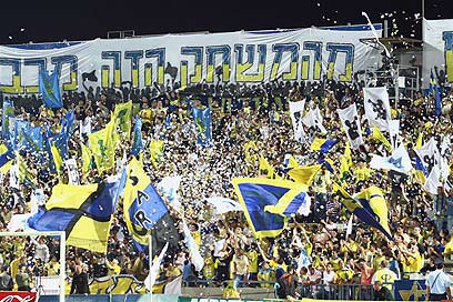 אוהדי מכבי בדרבי. אלי כהן ונמני ציינו אותם לחיוב (צילום: אלי אלגרט)