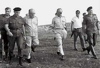 דיין, אשכול, להט ושרון מסיירים בגדה (צילום: לע"מ)