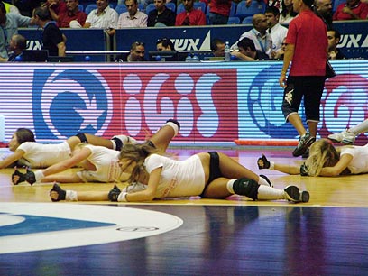 המעודדות הרוסיות מציגות את מרכולתן בפיינל פור (צילום: יועד כהן)