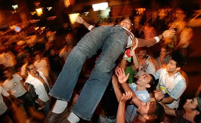 חגיגות בלבנון לאחר ההחלטה במועצת הביטחון (צילום: AP)