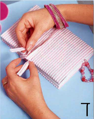 נשאר לכם בד? גזרו ממנו סרט באורך המתאים, וקשרו את הספר, האלבום או היומן בבד תואם. אנחנו גם צירפנו לב קטן.