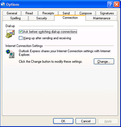 כדי להיפטר מההגדרה, יש להיכנס לכלים (Tools), אפשרויות (Options), לעבור ללשונית התקשרות (Connection) ולוודא ש-Disconnect after sending and receiving לא מסומן בוי. כדאי לסמן את האפשרות העליונה בוי, Ask before switching dial-up connections (שאל לפני מעבר בין התקשרויות).