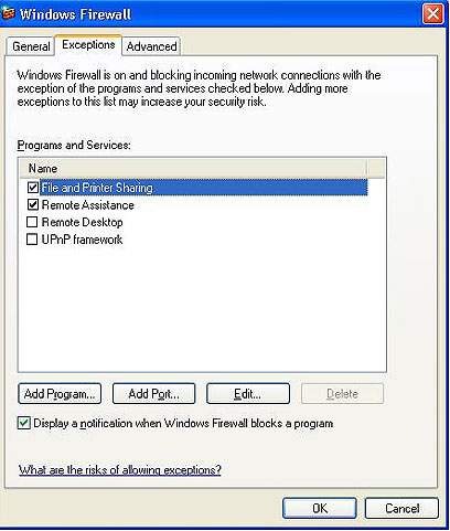 מי שחסם בטעות והתחרט, צריך לגשת לספרייה Network Connections (חיבורי רשת) שבלוח הבקרה, ולהיכנס לתפריט Windows Firewall שבצד. בלשונית השנייה, Exceptions, ניתן לראות את רשימת התוכנות שקיבלו בעבר אישור להתחבר לרשת. תוכנות שנחסמו אפשר להוסיף מחדש על-ידי לחיצה על כפתור Add.