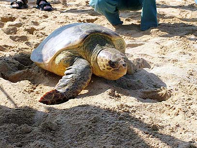 הצבה החלה לגרור עצמה על החול לעבר המים