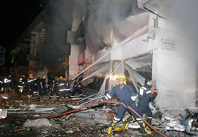 צוותי כיבוי פועלים בזירת הפיצוץ (צילום: רויטרס)