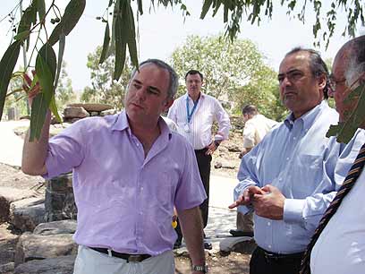 גאדרי (במרכז) מאזין להסבריו של ח"כ יובל שטייניץ (צילום: רועי נחמיאס)