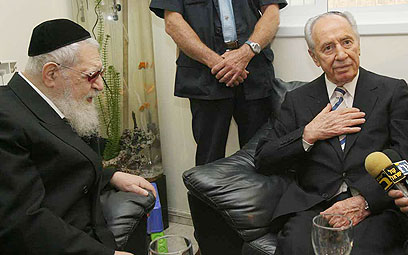 מהטקס המשיך פרס לכותל ולפגישה עם הרב עובדיה יוסף, שהורה לחברי סיעת ש"ס לתמוך במועמדותו. "אני מודה לך מאוד, אני מעריץ של הרב, הוא גאון שעל עם ישראל להודות לו", אמר. "מהיום הרב עובדיה יוסף הוא מורה נבוכים, כי הוציא את ישראל ממבוכה גדולה". הרב בירך אותו: "לך בכוחך זה והושעת את ישראל".