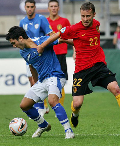 עידן סרור מול בלגיה. הטוב במגרש (צילום: איי פי)