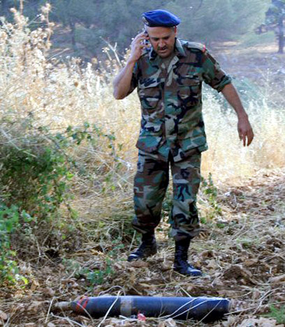 חייל לבנוני ליד רקטה שאותרה (צילום: איי.אף.פי)