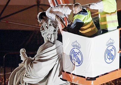 ראול מלביש את האלה היווניה סיבלס בדגל ריאל (צילום: רויטרס)