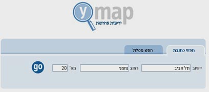 1. נכנסים לשימושון בעמוד הבית של ynet ובוחרים "מפות", או מקלידים www.ymap.co.il בשורת הכתובת של הדפדפן.