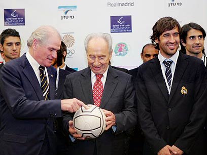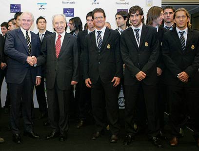 שמעון פרס מארח את אנשי ריאל מדריד (צילום: איי אף פי)