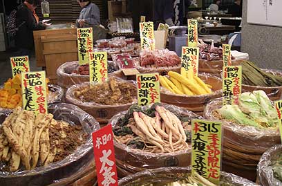 התסיסה היא אחד התהליכים הכי בריאים שיש. דוכני ירקות כבושים ביפן (צילום: פיליס גלזר)