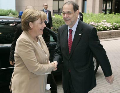 מרקל עם סולאנה, היום. צפויים דיונים מורכבים (צילום: רויטרס)