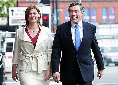 גורדון בראון ורעייתו שרה, היום במנצ'סטר (צילום: איי.פי)