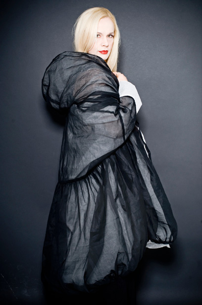 שחור מכסה לבן. אלונה קמחי בשמלה של ששון קדם