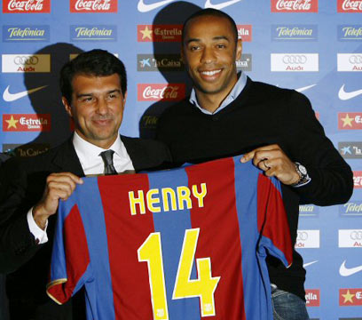 הנרי עבר תמורת 24 מיליון יורו מארסנל, אותה החליט לעזוב למרות שבקיץ שעבר דחה הצעה למעבר שכזה. נשיא בארסה, ז'ואן לאפורטה, סיפר: "רצינו אותו כבר הרבה מאוד זמן, יוהן קרויף (שלבש בעבר את הסיפרה 14) ביקש להחתימו עוד כשהנרי היה צעיר. הוא אחד השחקנים הטובים בעולם, ומגיע אלינו בתזמון מושלם כדי להוסיף איכות ניסיון ומחויבות".
