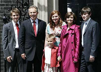 משפחת בלייר בהרכב מלא בתמונה אחרונה מול דאונינג 10 (צילום: AP)