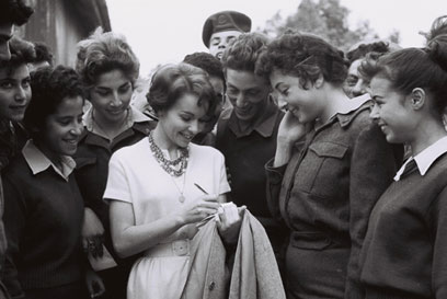 השחקנית פרנסואה ארנו עם חיילות צה"ל (צילום: משה פרידן)