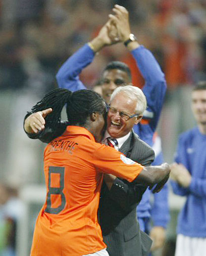 דרנטה חוגג עם מאמנו. הלהיב את הסקואטים ביבשת (צילום: איי פי)