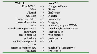 קל ללעוג למיזמי Web 2.0, כי רובם אריזה. הבה ננסה בכל זאת להיצמד למהות. זהו הקטע הפותח של המניפסט של Web 2.0 מ-2005: