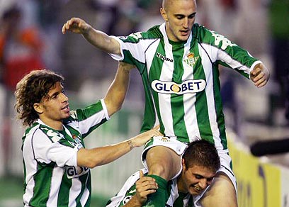 שחקני בטיס חוגגים הישארות. פאבונה מגיע לעיר (צילום: איי פי)