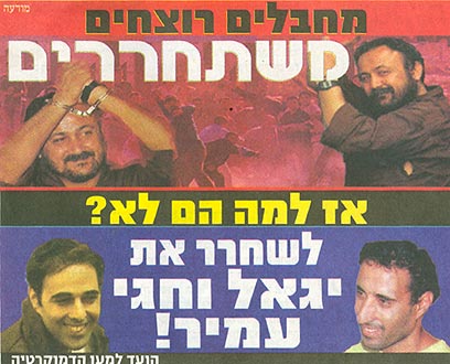 "מחבלים רוצחים משתחררים - אז להם הם לא? לשחרר את יגאל וחגי עמיר" - זו המודעה שפורסמה הבוקר (יום ג') בעיתון "הארץ" על-ידי ארגון ימני בשם "הוועד למען הדמוקרטיה". אנשי הוועד אמרו ל-ynet כי בכוונתם להציב כמאה שלטי חוצות ענקיים ברחבי הארץ, בהם יופיע רוצח ראש הממשלה.