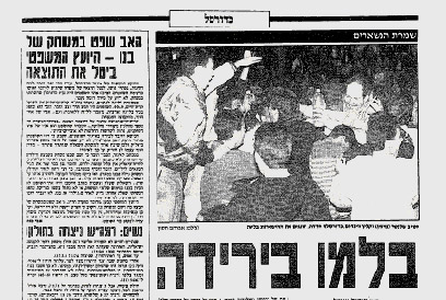 ווינדהאם ושלכטר מתחבקים. חדרה נשארת בליגה (ידיעות אחרונות 24.3.92)