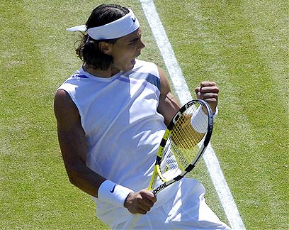 נאדאל חוגג על הדשא הלונדוני. יזכה לראשונה בווימבלדון? (צילום: איי פי)