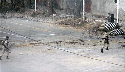 חיילים פקיסטנים רצים לעבר המסגד האדום, הבוקר (צילום: AP)