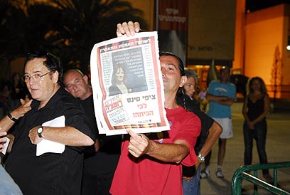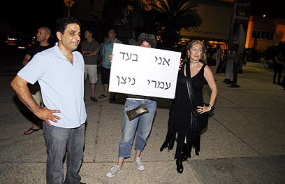מפגינה מביעה סולידריות עם מנהלו האמנותי של תיאטרון הקאמרי