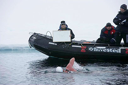 לואיס גורדון פיו עשה אתמול (א') את הבלתי ייאמן, כאשר זינק לתוך מימי הקוטב הצפוני הקפואים, ושחה למרחק של קילומטר אחד לאורך שבר בקרחונים.